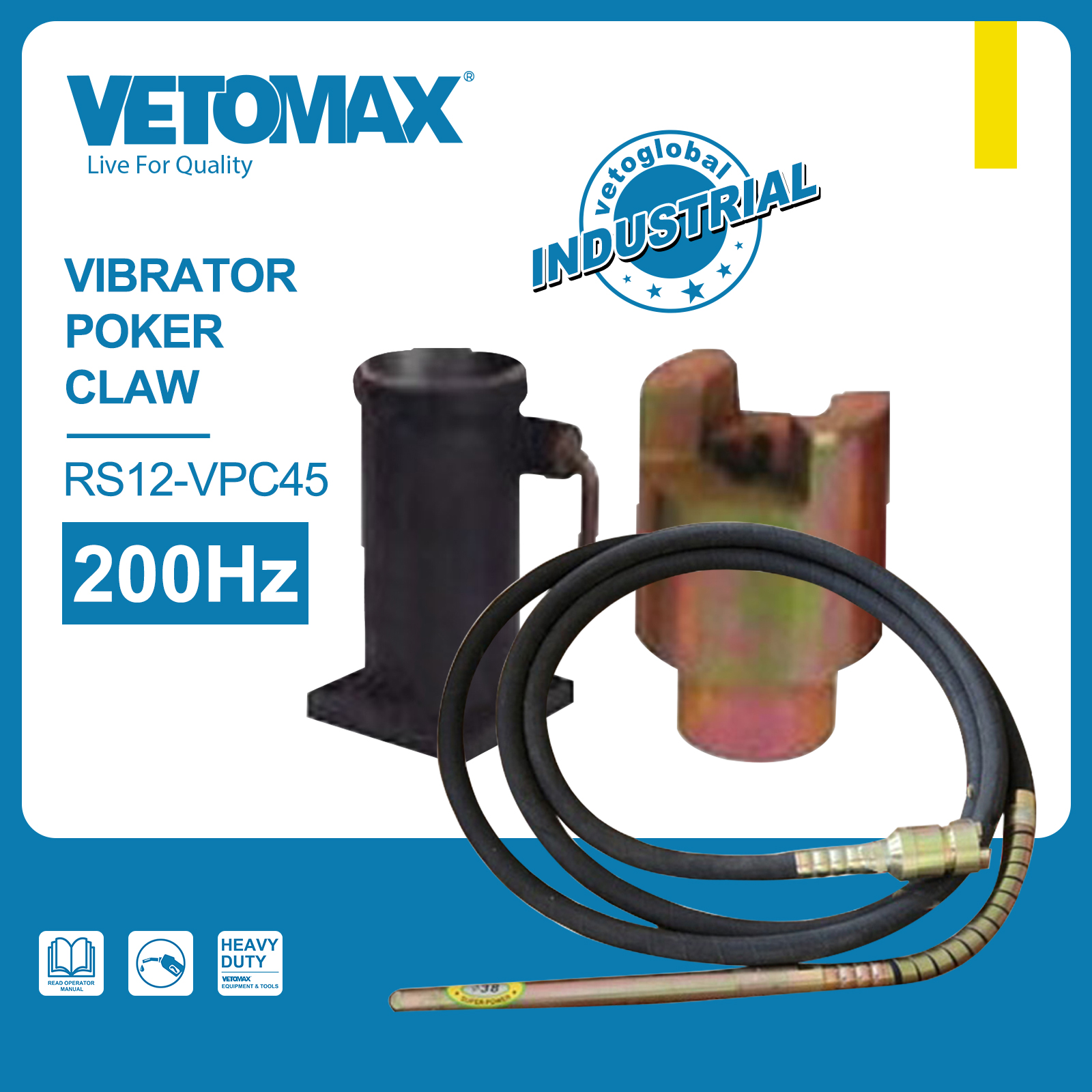 VIBRATOR POKER CLAW Claw type fitting DIAMETER: 45mm Head length:470mm Vibrating frequency:200Hz Vibrating ampitude:1.2mm Flexible hose length:6m Packing: carton box