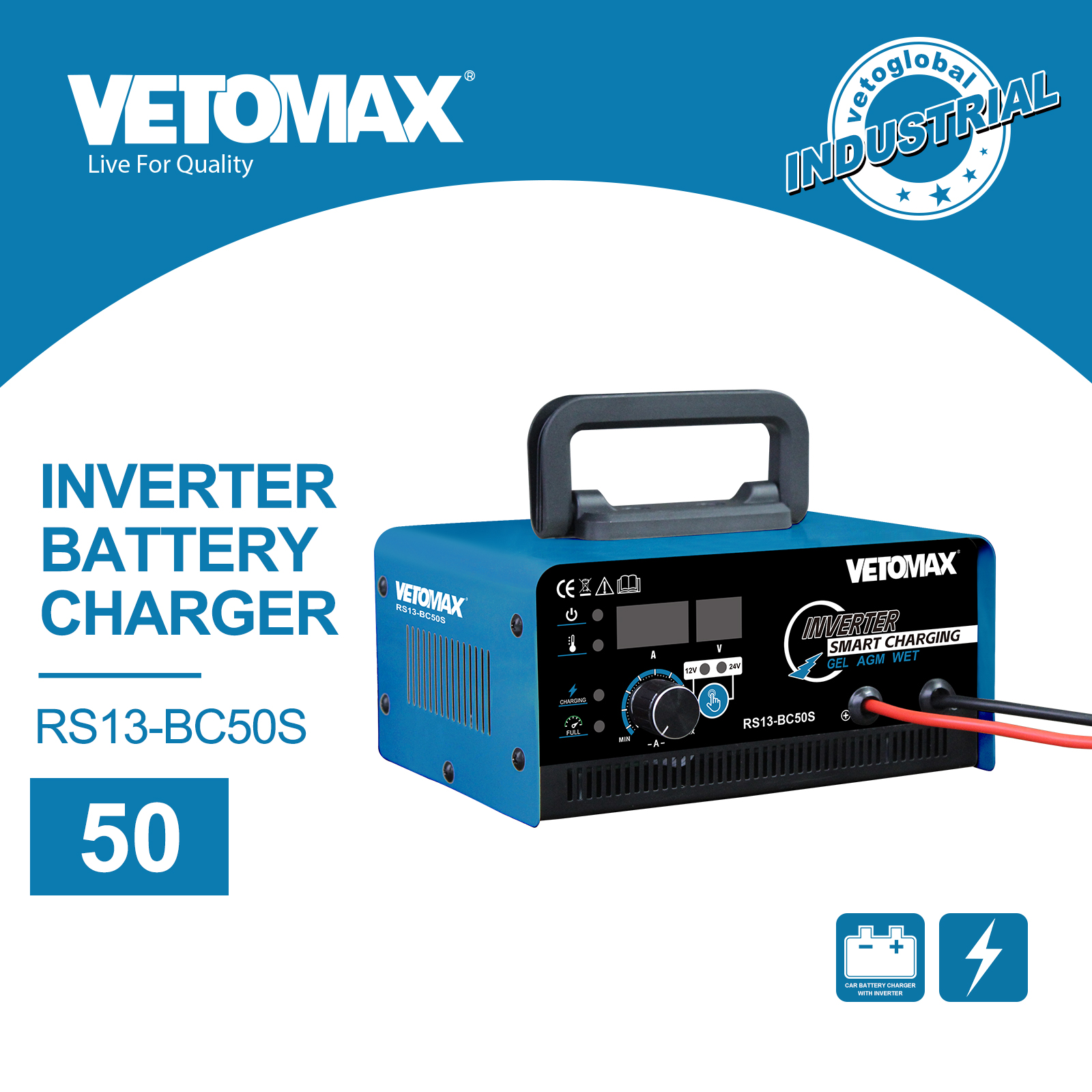 INVERTER BATTERY CHARGER Power input:230V 50/60HZ Rated input power(W):500 Charging current(A):25 Charging voltage(V):12/24 Charging capacity(AH):20-300