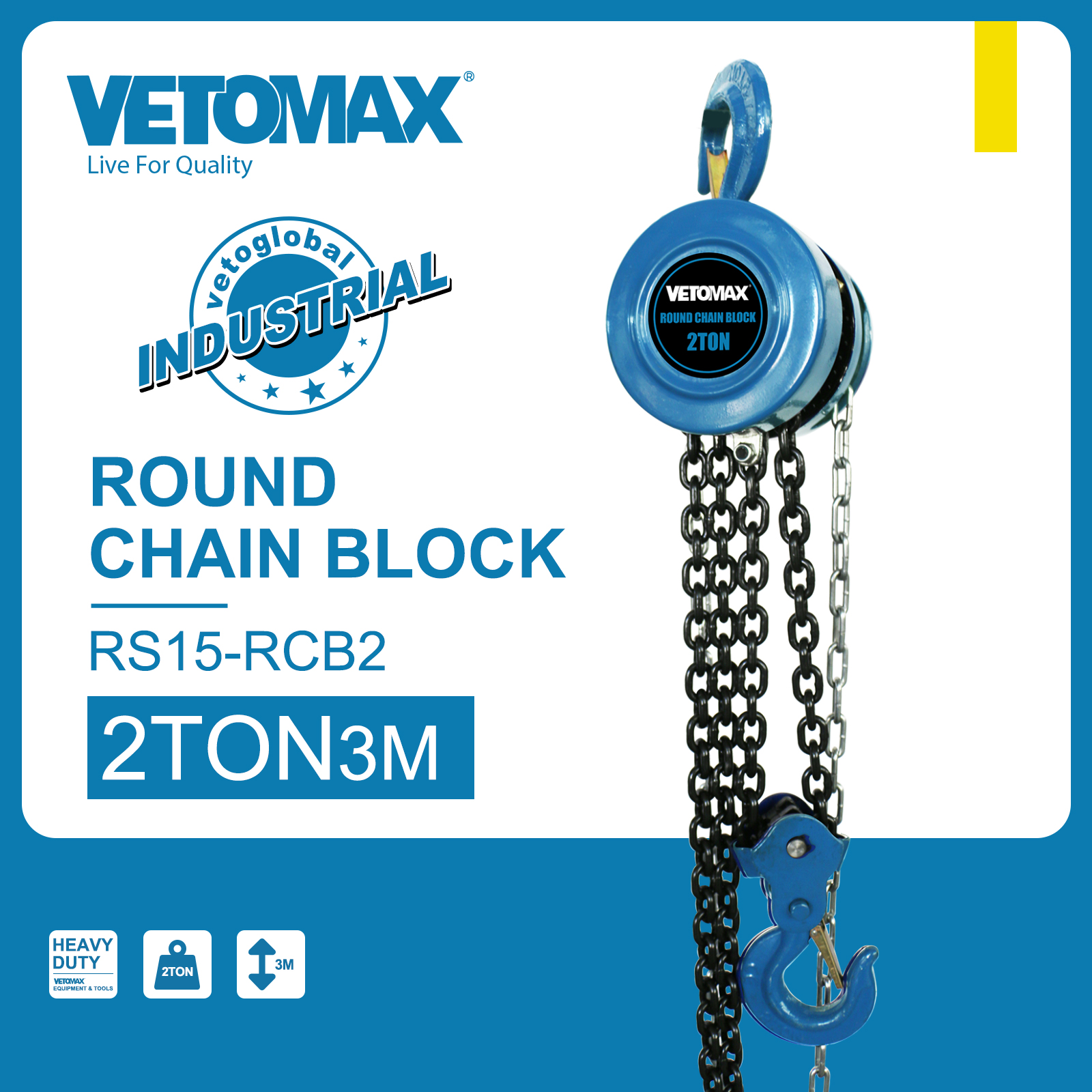 ROUND CHAIN BLOCK Capacity: 2TON single fall Lifting Height: 3m Load Chain :6mm Wood box packing DIM:28.5*18.8*14.6CM