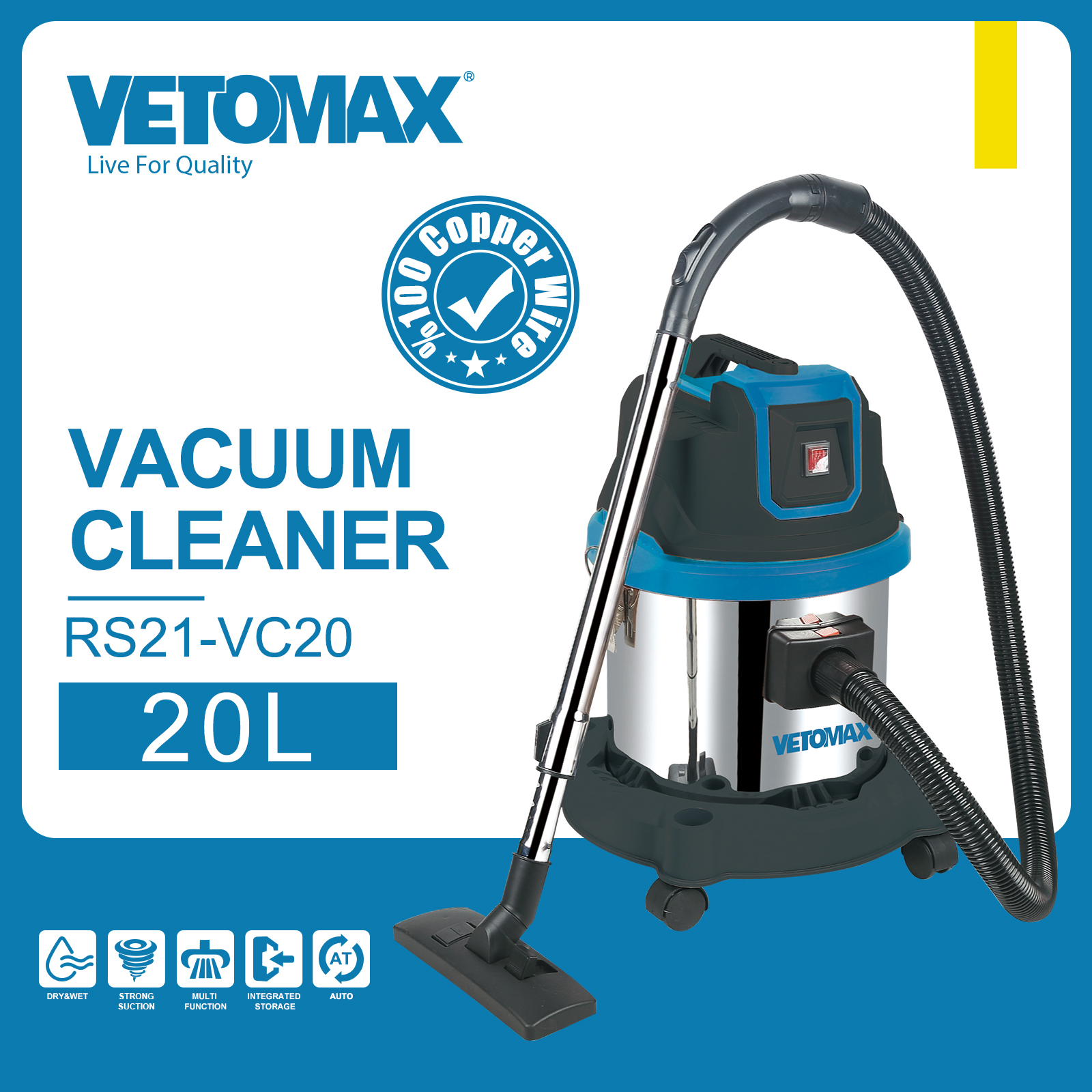 VACUUM CLEANER Voltage: 220V-240V~50/60Hz Input power: 1500W Air flow: 53L/ S Vacuum pressure: 230mbar; Dust capacity:20L 1pcs flexible hose 1pcs floor brush 1pcs flat tip 1 pcs round brush 1 pcs metal pipe 1pcs1pcsDustproof bag Tank material:Stainless iron Power calble 5m Wet and dry cleaning Packed by carton box: Copper wire DIM:42.5*42.5*53