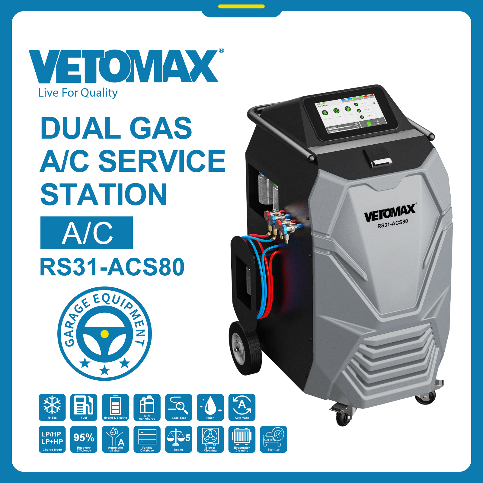 DUAL GAS A/C SERVICE STATION *Compatible with R134a and 1234yf *USE FOR R134a & 1234yf *USE FOR Fuel *Compatible with electric, gasoline and hybrid vehicles *Leak Test *Automatic internal system cleaning to avoid the mixing of different refrigerants and compressor oils *HP/LP/HP+LP charge mode is selectable *Recovery Efficiency *Fully automatic recovery, vacuum, charge, leak detection *Printer *Up to 20000 vehicle A/C service database, addable and editable by SD card *Operation Report *Easy Calibration *recovery efficiency is up to 95% *5 high-precise scales for accurate weighing of R134a tanks, R1234yf tanks, PAG, POE, wasted oil bottles *10-inch touch screen, full digital display and control, operation of step-by-step prompts