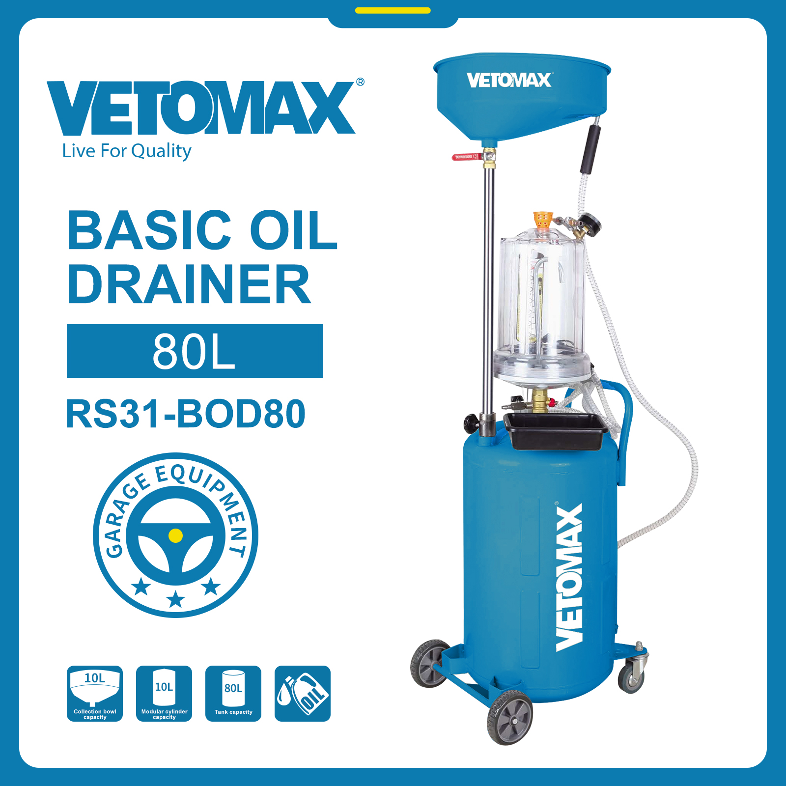 BASIC OIL DRAINER WORKING AIR PRESSURE : 8-10KG/CM TANK VOLUME : 80L BASIN VOLUME : 10L MEASURING CUP VOLUME : 10L ADJUSTABLE HEIGHT :140-150CM