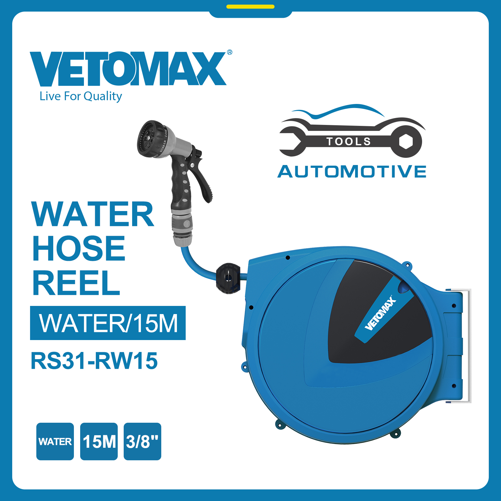 WATER HOSE REEL Hose Joint:3/8" Hose Length:15Meters N.W:24 KGS G.W:28 KGS MEAS:92*42*45 CM colour box+carton packing