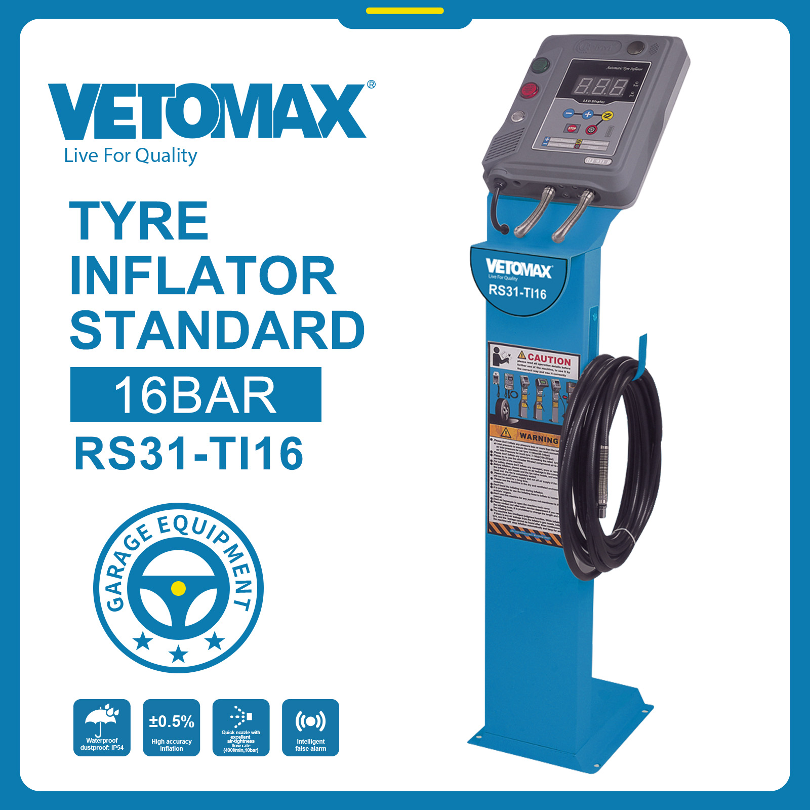 TYRE INFLATOR STANDARD *ELECTRIC-LINE *MODE: FULLY-AUTOMATIC *SCREEN : LED *AIR INLET PRESSUER : 4-10 1016 BAR **MAXMUM FLOW RATE : 400L *POWER SUPPLY :AC220V-50/60HZ *POWER : 32WN.W:10.7 KGS G.W:12.2 KGS DIM:88*29*30CM