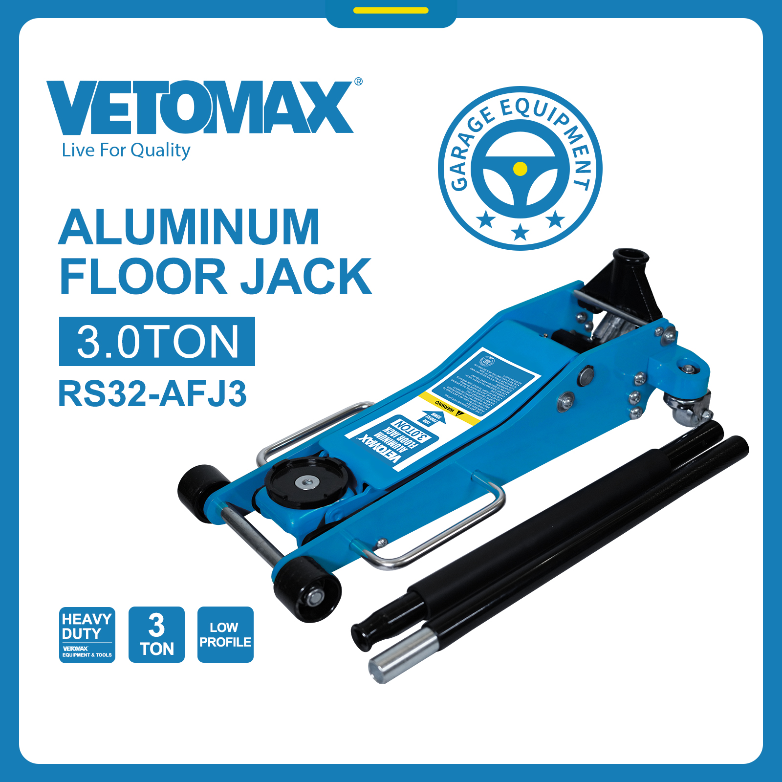 ALUMINUM FLOOR JACK CAPACITY(TON): 3.0 TON Double Pump MIN.H.(MM):93 LIFTING.H(MM):470 N.W: 23.8KGS G.W: 25.3KGS MEAS:80.5*36*17.5CM colour box