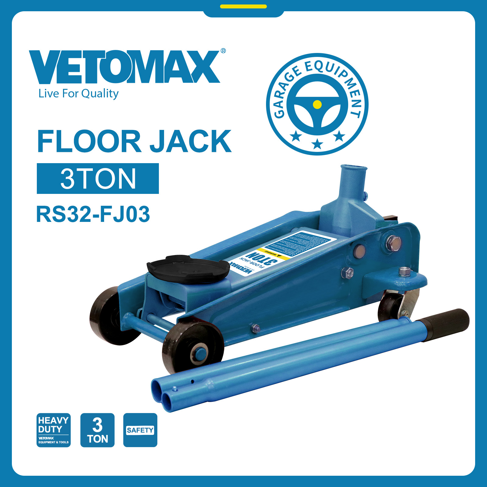 FLOOR JACK CAPACITY(TON):3 TON MIN.H.(MM):135 LIFTING.H(MM):360 MAX.H(MM):495 N.W:22 KGS G.W:23 KGS MEAS:68*37*19.5 CM colour box