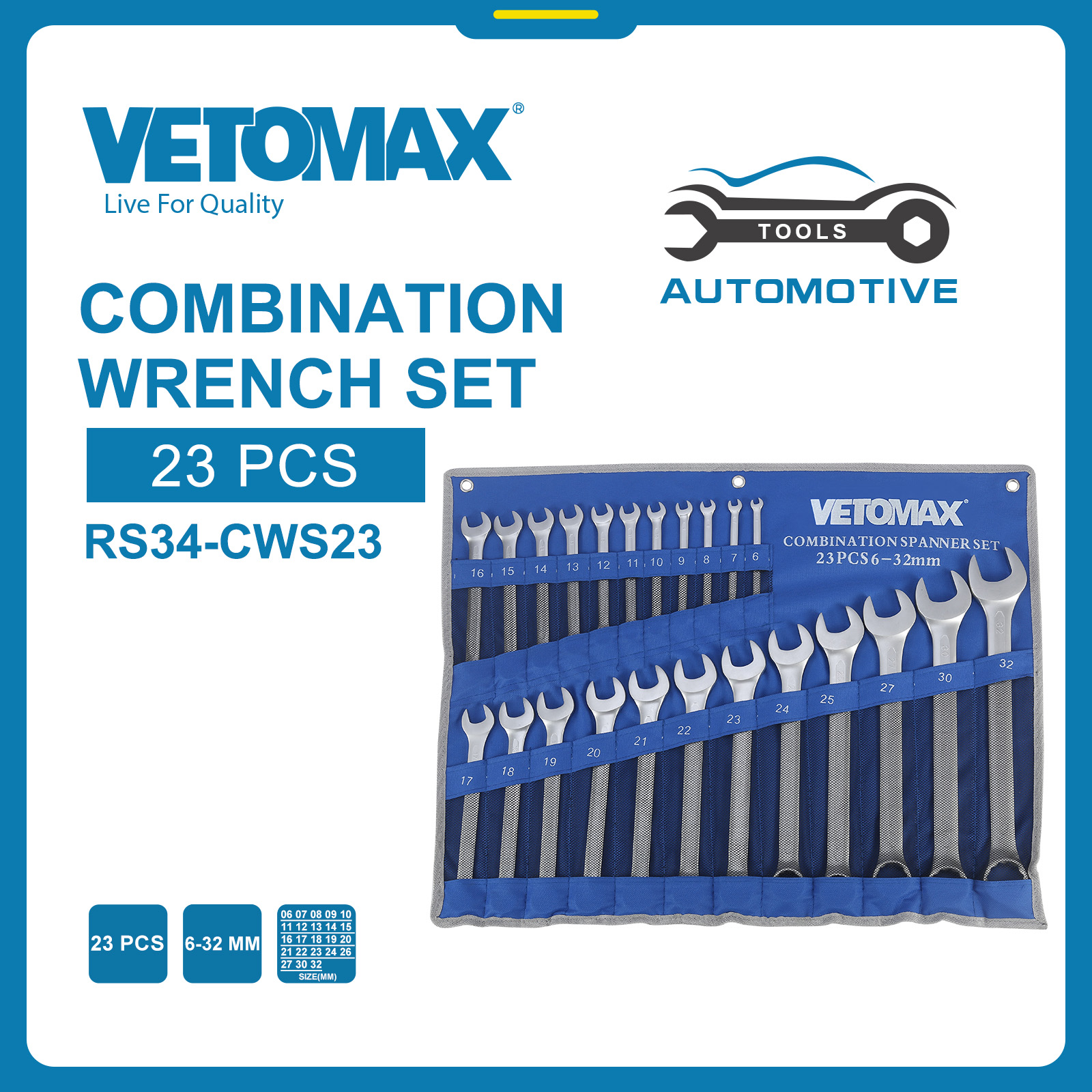 23 pcs combination wrench set *Size:23 pcs 6-32mm *Size: 6 7 8 9 10 11 12 13 14 15 16 17 18 19 20 21 22 23 24 26 27 30 32mm N.W:30 KGS G.W:31 KGSN. MEAS:51*26*27 CM Packing:color box+craft paper box