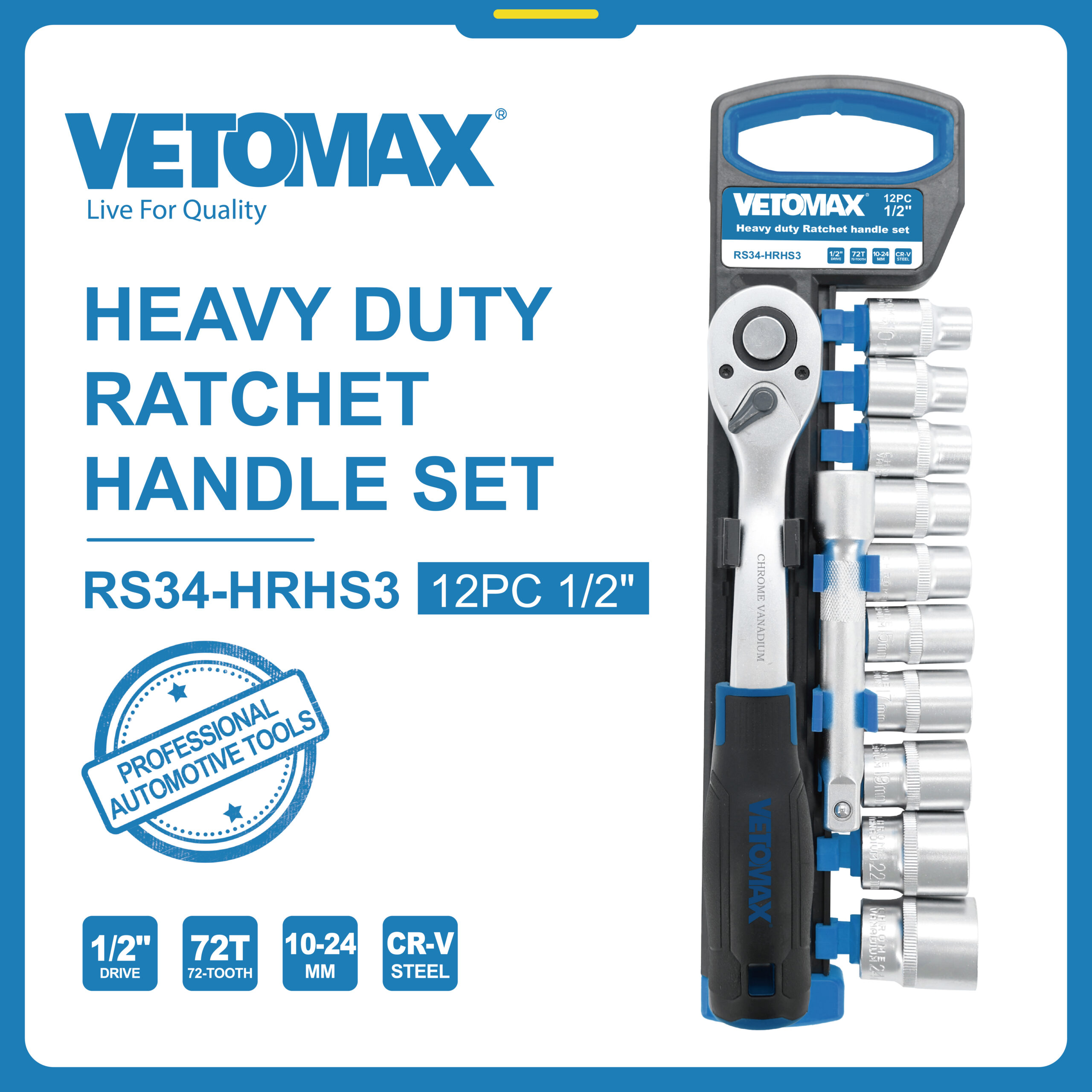 12PC 1/2"Heavy duty Ratchet handle set *1PC1/2" ratchet handle 72T *1P CRV Extension bar 125mm *socket:10, 11, 12, 13, 14 ,15, 17, 19,22,24mm