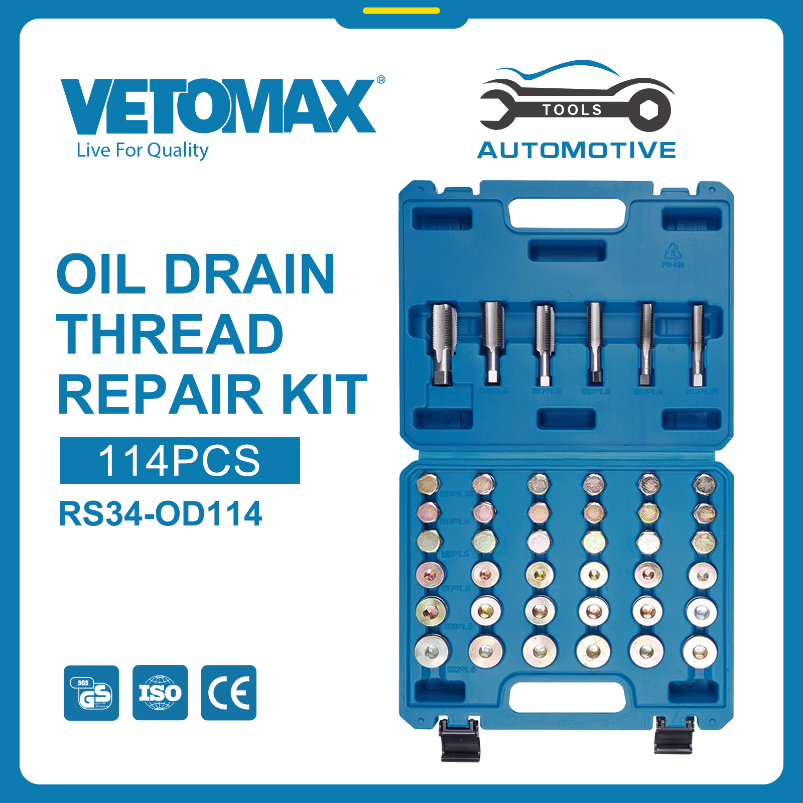 114pc Oil Drain Thread Repair Kit N.W: 14 KGS G.W: 15 KGS MEAS:34X28X 30CM PACKING:carton packing