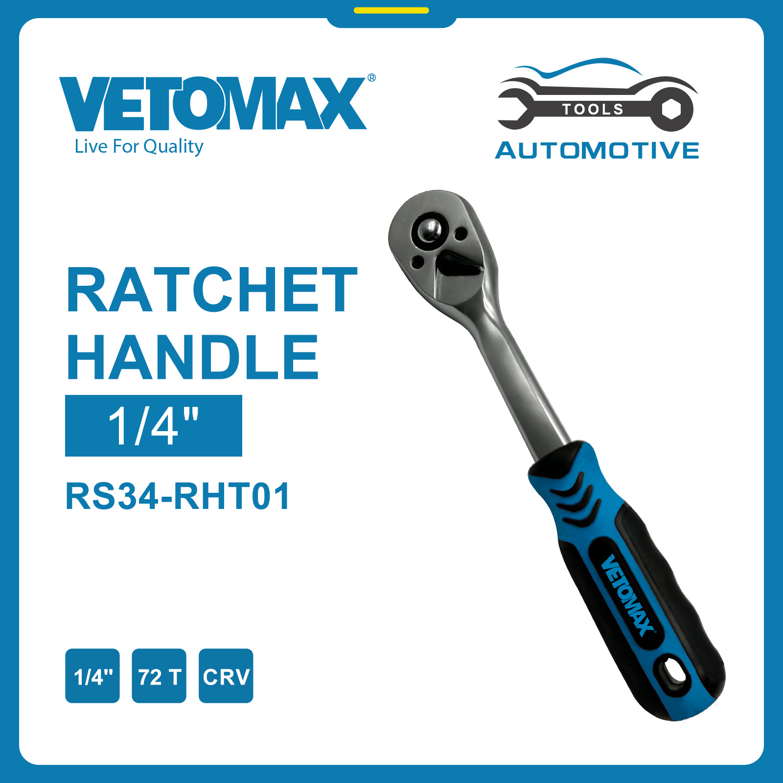 1/4" Ratchet handle 72th with blister packing N.W:18 KGS G.W: 19 KGS MEAS: 43*28*35 CM Packing:card packing+colour box+craft paper box