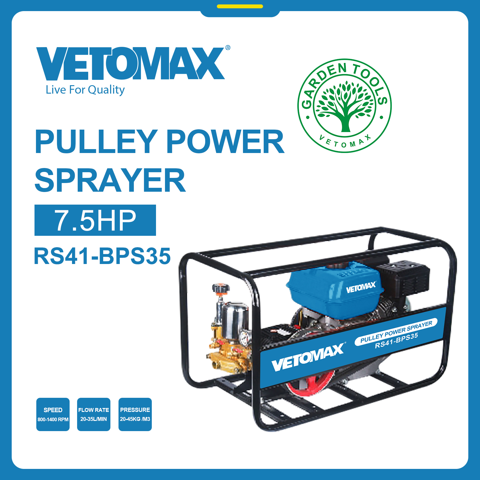 Pulley Power Sprayer speed : 800-1400 rpm POWER : 7.5HP FLOW RATE : 20-35L/min PRESSURE : 20-45 /m3