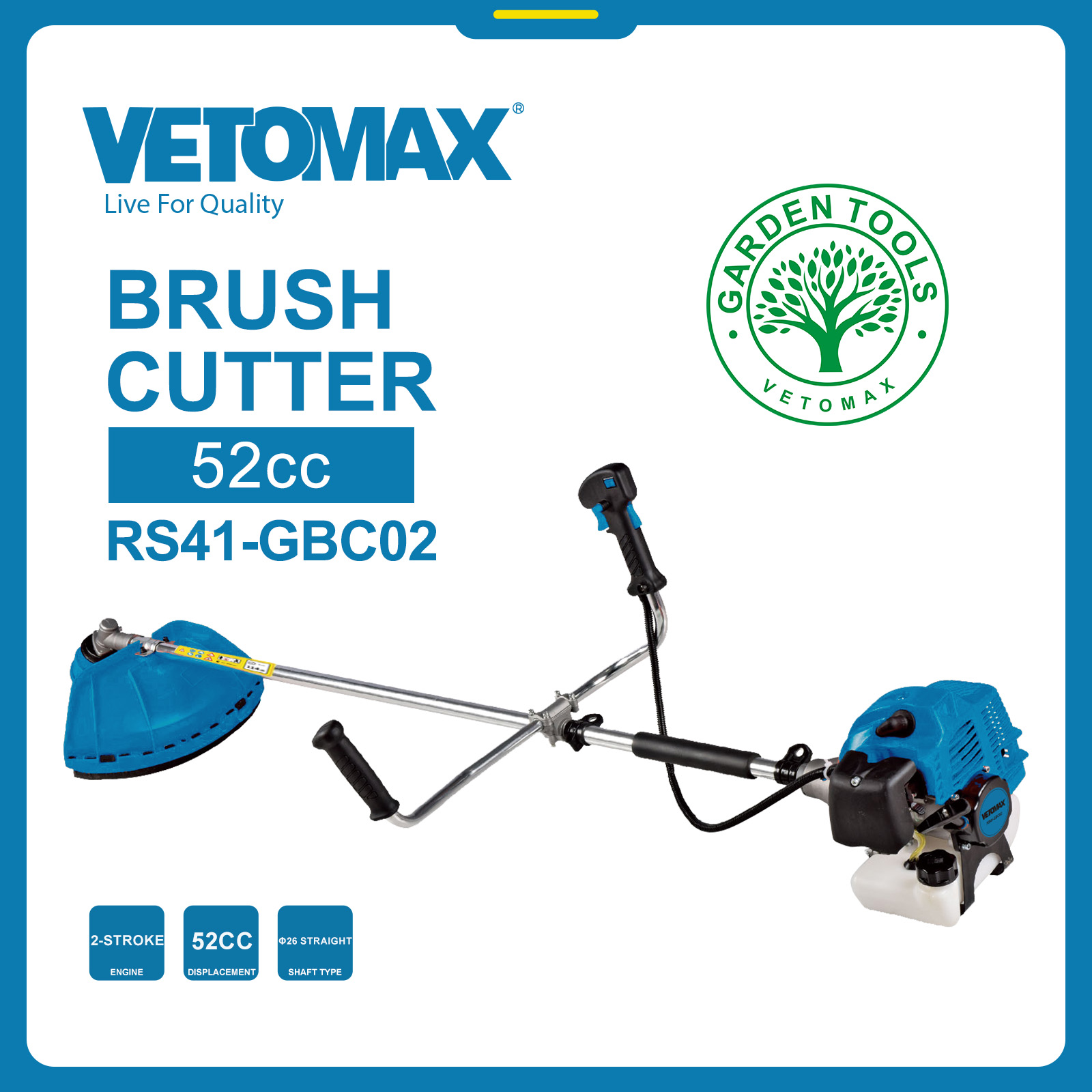 BRUSH CUTTER 1)Engine: 2-stroke 2)Displacement: 52cc 3)Rated power: 1.47kW 4)Fuel capacity: 1200ml 5)Trimmer width: 430mm 6)Blade type: 3T 255mm 7)Shaft type: φ26 straight 8)Handle type: bike N.W:7 KGS G.W:9 KGS MEAS: 37*31*23 CM Packing: colour box +box